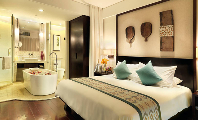 •酒店概述: 按超五星级打造的目前国内最大的滨海度假酒店,拥有1160间/套房的海景客房、38套顶级海景别墅。拥有通往私家沙滩的地下VIP通道